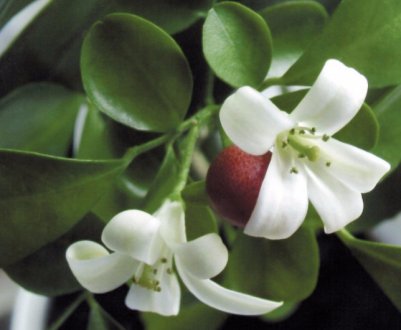 Цветки белые или жёлтые. Можно выращивать в саду, но помните, что вид не холодостойкий, идеально подходит для помещений – при комнатной температуре цветёт зимой.