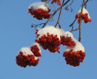 Ягоды рябины полностью созревают в сентябре-октябре. В этот период и стоит проводить сбор урожая. Второй вариант – дождаться первых морозов, когда плоды станут сладкими. Их следует снимать с дерева вместе с плодоножками. Собранные так ягоды могут долго сохранять свежесть. Для хранения рябины можно использовать заморозку, но не допускайте оттаивания. А можете просто разложить плоды рябины слоем в 10-15 см и так хранить до весны при температуре 0–1°С.