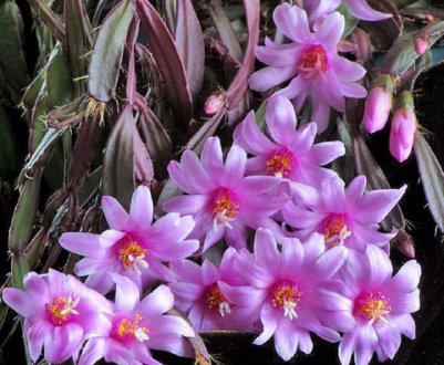 Состоит из мясистых стеблей, на которых растут зеленоватые, меленькие листья с гофрированным краем. Цветы бывают белого, розового или красного цвета входят в соцветие, которое имеет кистеобразную форму.