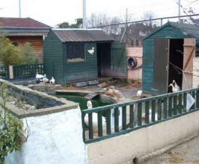 Расширение выгульного дворика лучше всего начинать таким образом, дабы он в будущем захватывал как можно больше плодородной земли, на которой бы могли вырасти травы, которые являются основным источником пропитания для уток в тёплое время года. Необходимо рассчитывать площадь будущего прогулочного загона таким образом, чтобы на каждую взрослую птицу приходилось не менее двух квадратных метров площади (без учёта мест под кормушки и поилки).