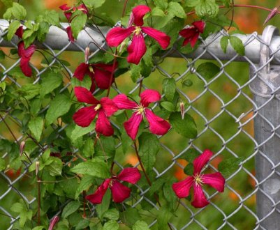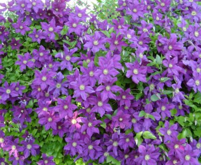 Витицелла (достигает длины в 4-6 м, цветет мелкими (3-5 см) цветками (до 100 одновременно) самых разных расцветок (синие, фиолетовые, пурпурные). Среди известных сортов - Виль де Лион, Виола, Полиш Спирит и др.