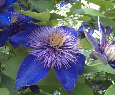 Дуранди (сорт появился еще в 1870 г. Вырастает до 2 м, цветки (от 7 до 14 см) имеют уникальный чистый цвет индиго. Устойчив к заморозкам и болезням.